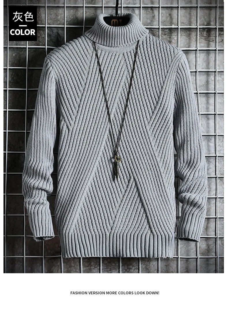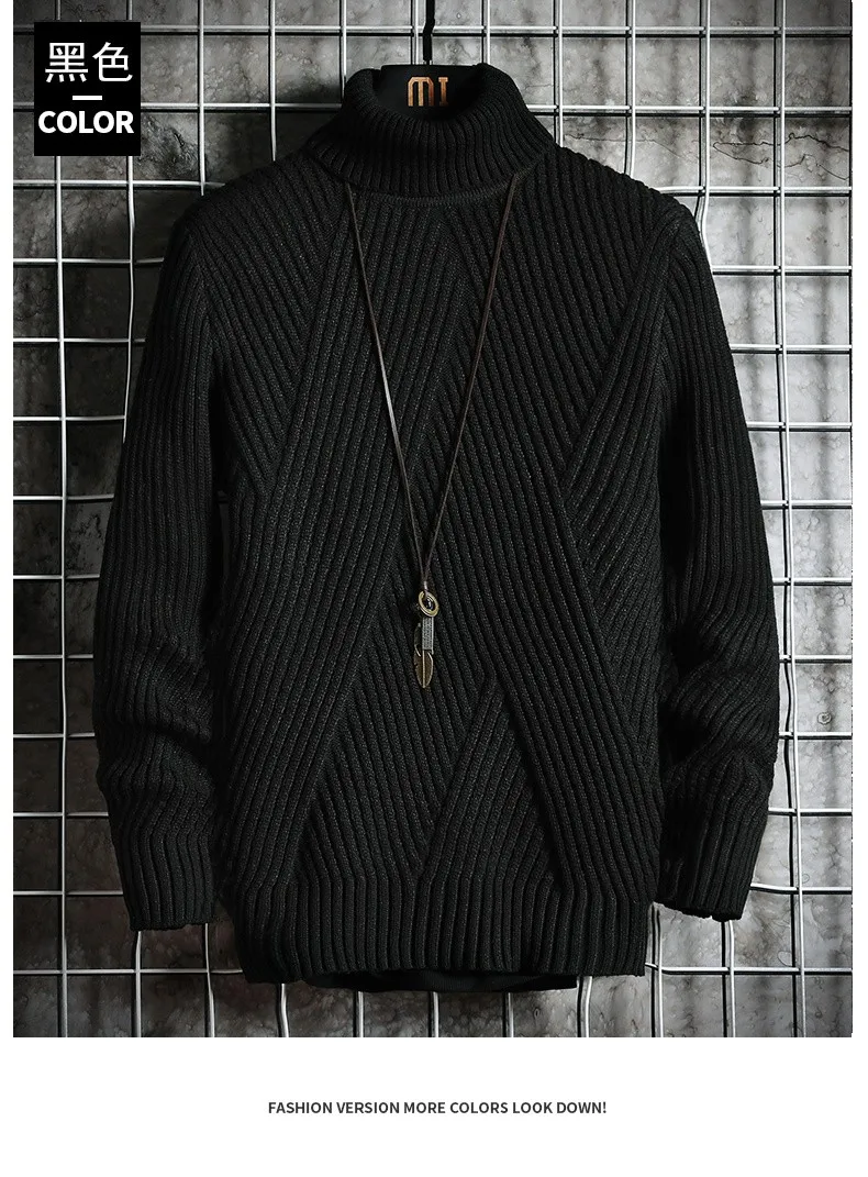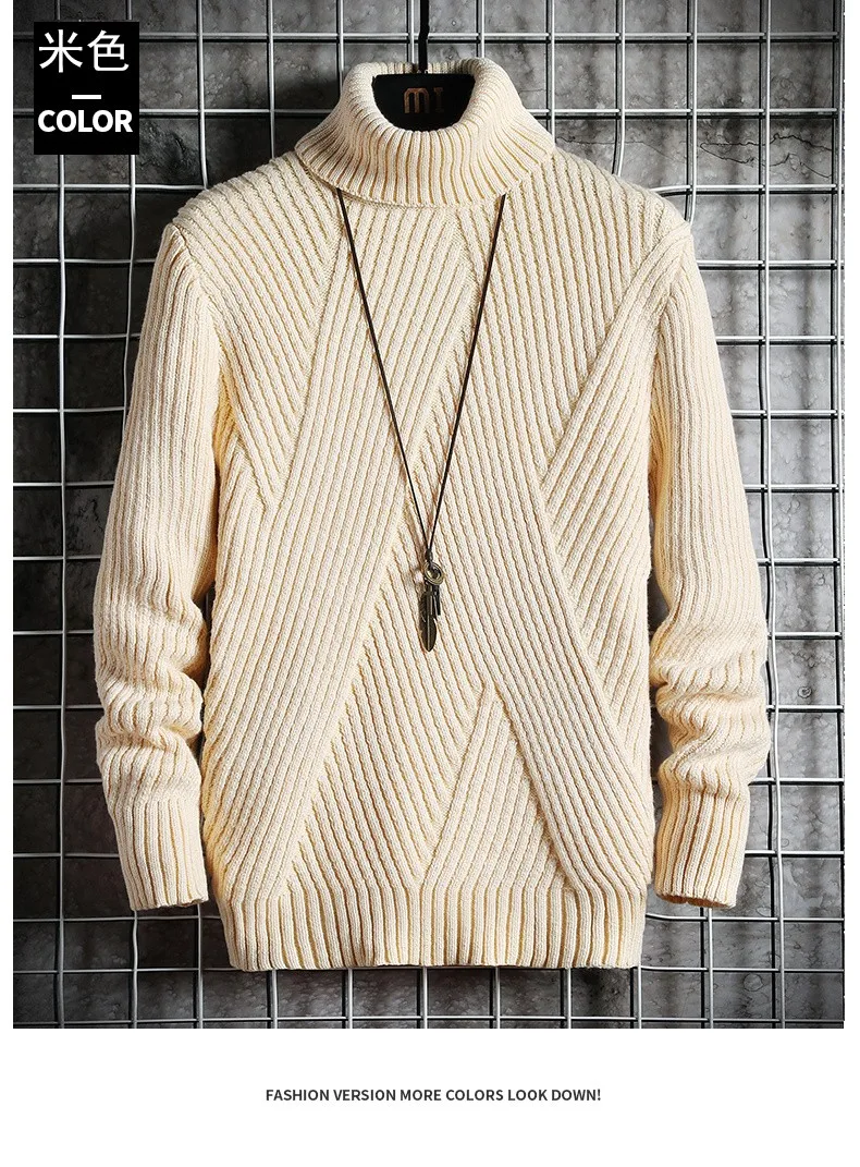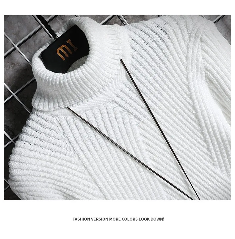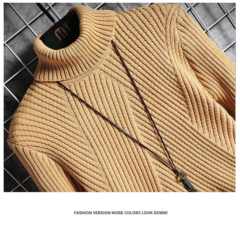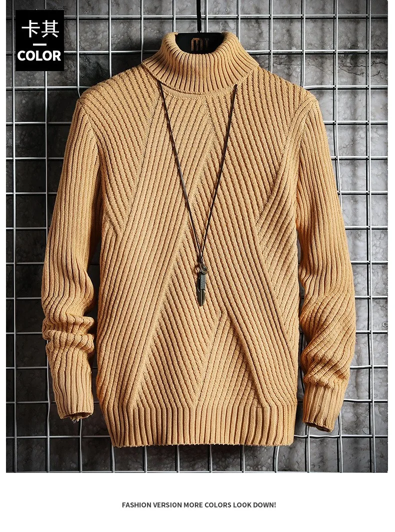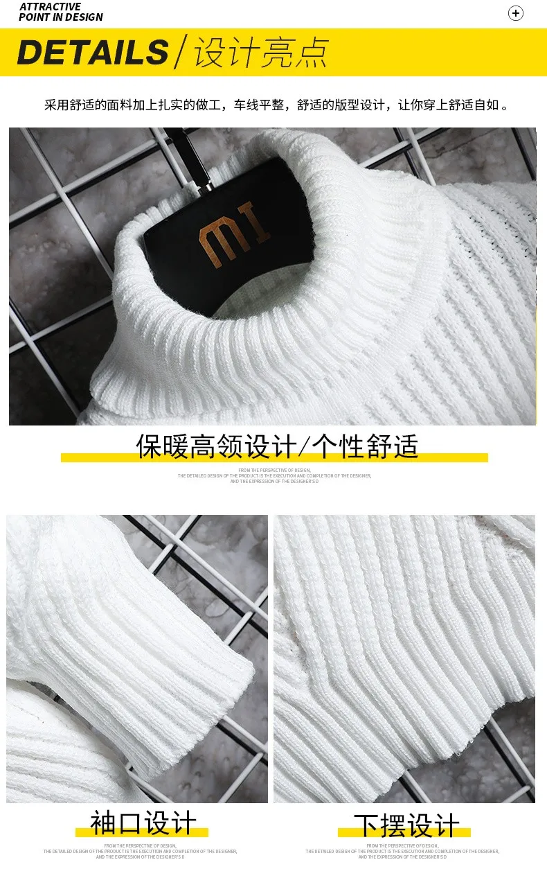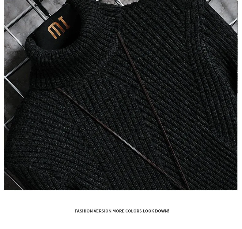 Мужской теплый свитер с высоким воротом, облегающий вязаный пуловер с двойным воротником, брендовая водолазка для зимы