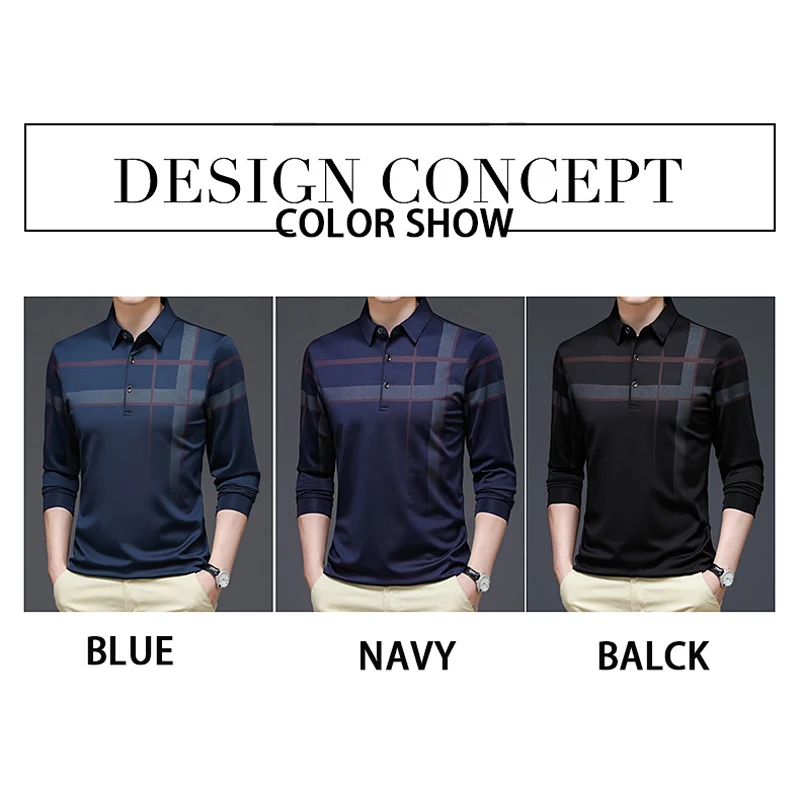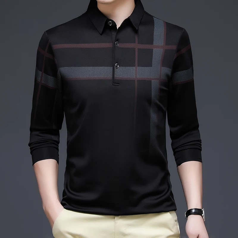 Мужская футболка с отложным воротником и длинным рукавом, с принтом