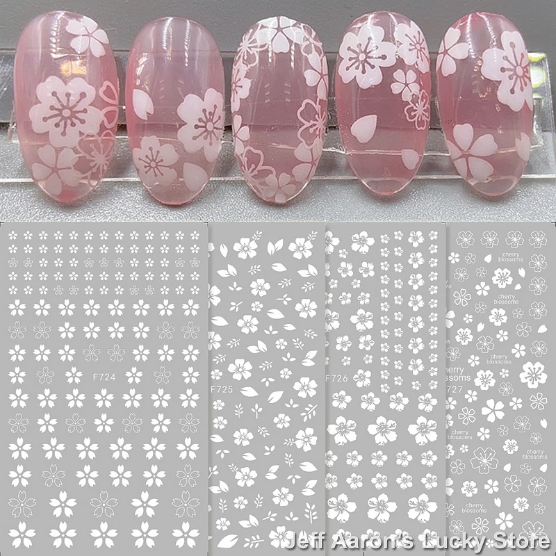 Стикер для ногтей вишневый цвет белые 3D листья клейкий слайдер нак...