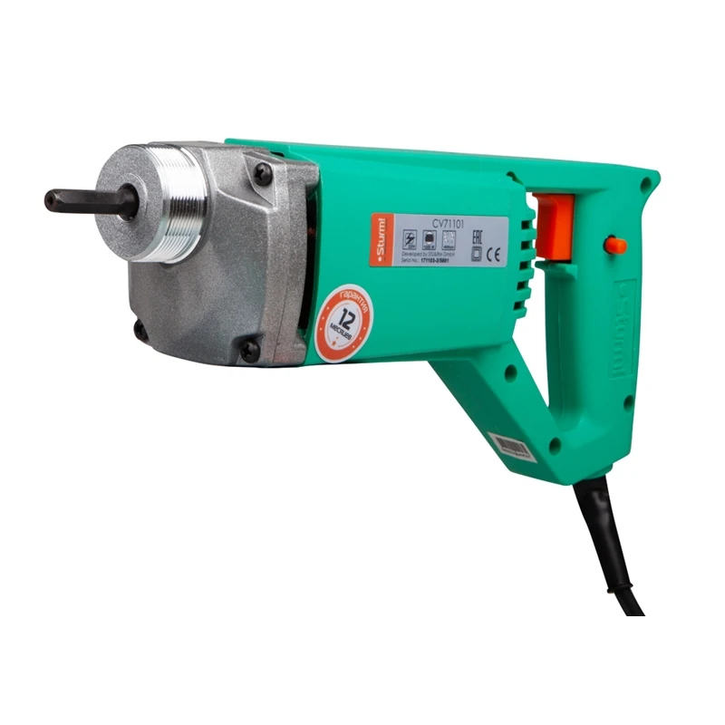 Портативный вибратор для бетона Sturm CV71101 - устройство для эффективного уплотнения бетонных смесей при заливке фундаментов, стен, колонн и т.д. Оснащен электродвигателем мощностью 1000 Вт со встроенным преобразователем. Этот профессиональный инструмент широко применяется при проведении строительных работ.