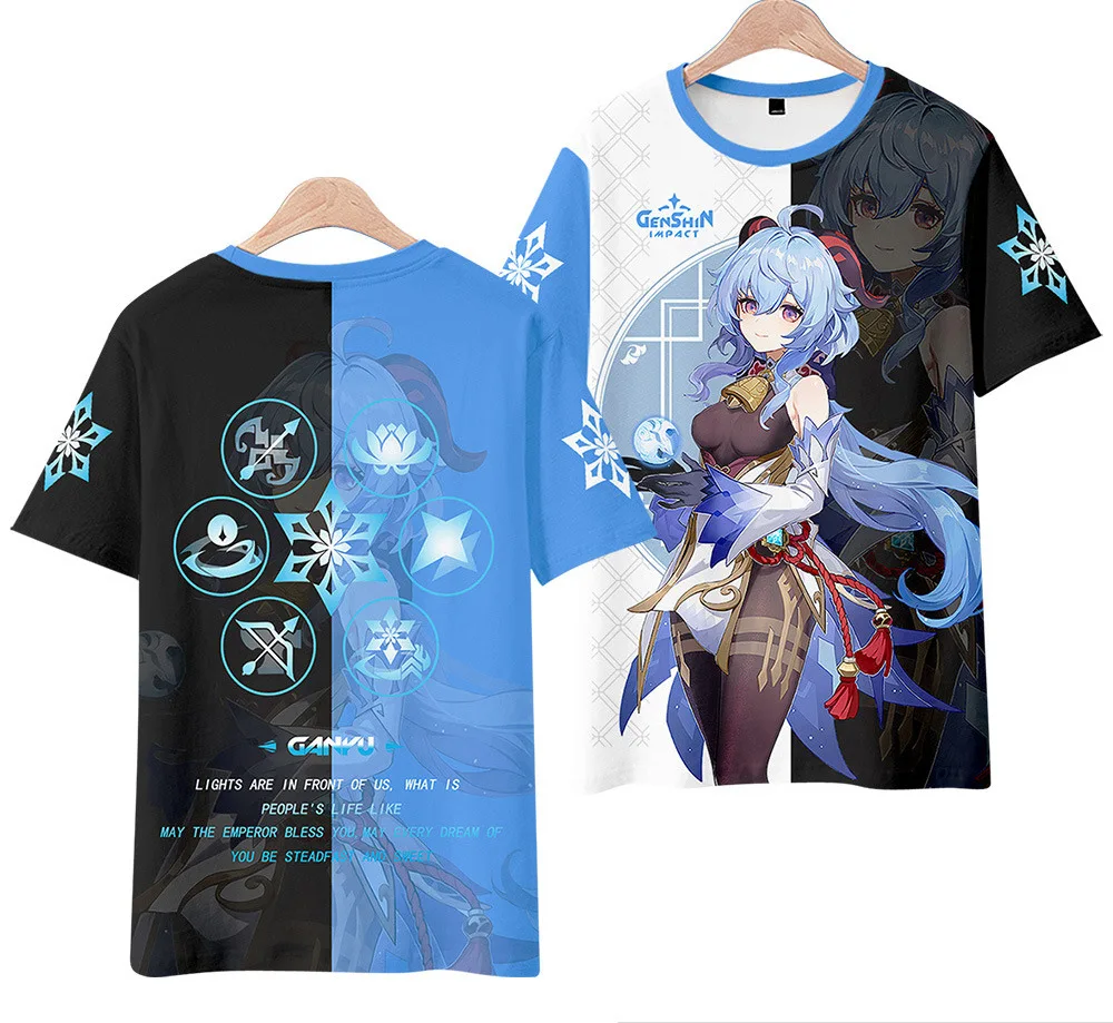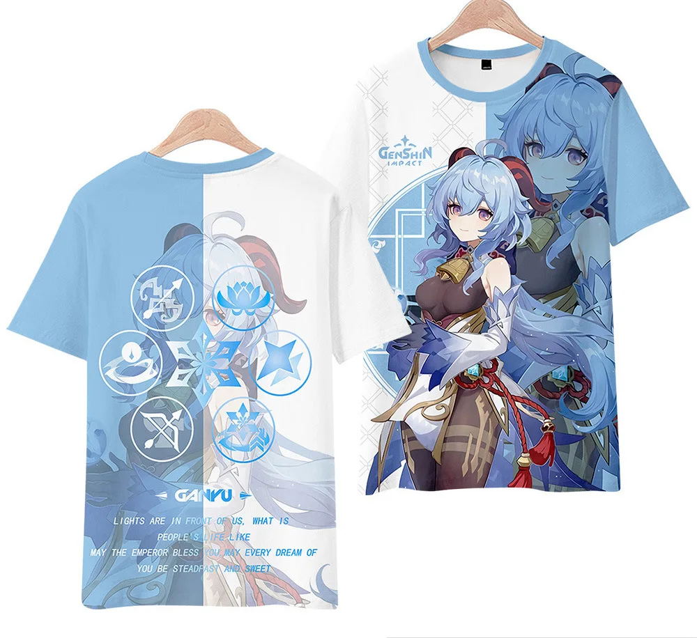 Летняя футболка для косплея, уличный костюм для мужчин и женщин, модная футболка большого размера для мальчиков и девочек, милые топы, Аниме игра Genshin Impact, 3D принт