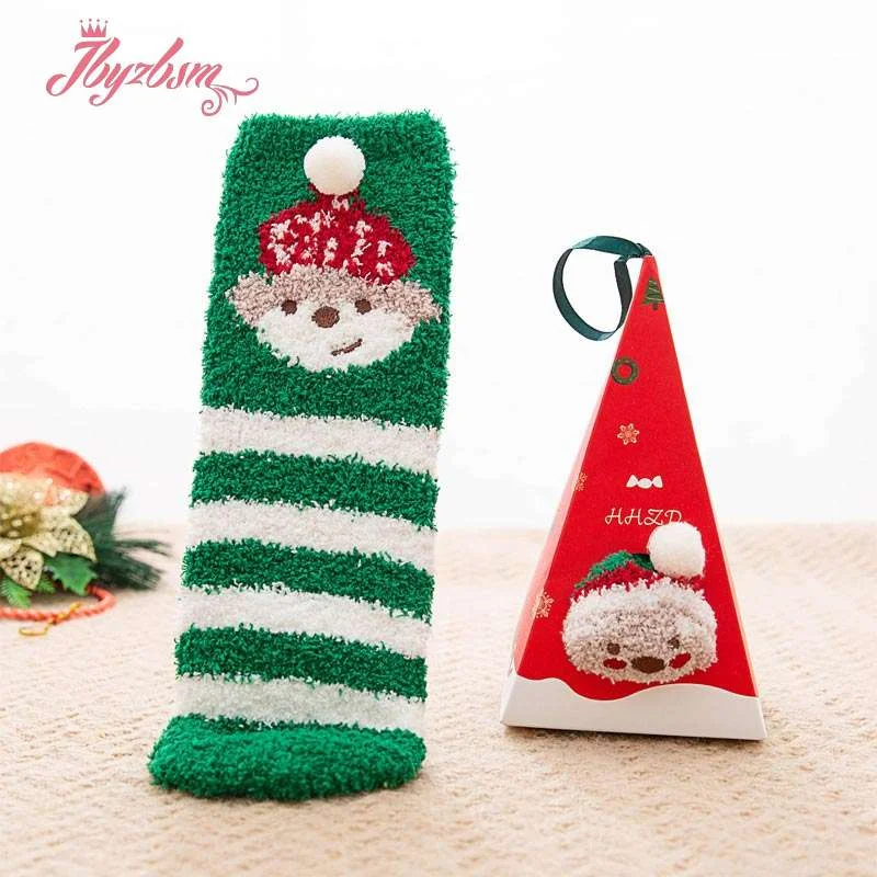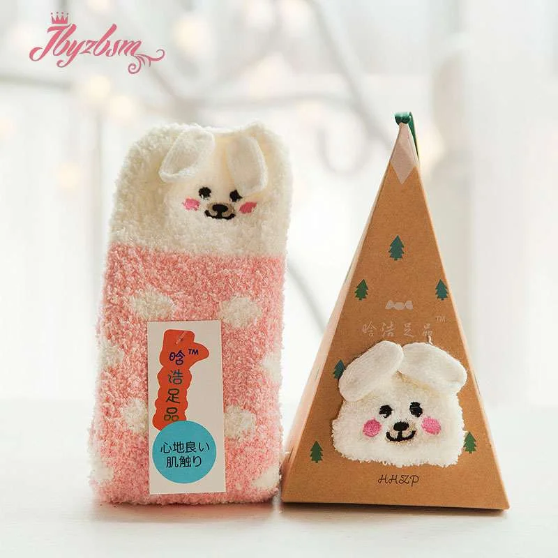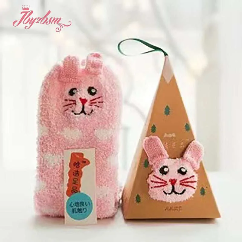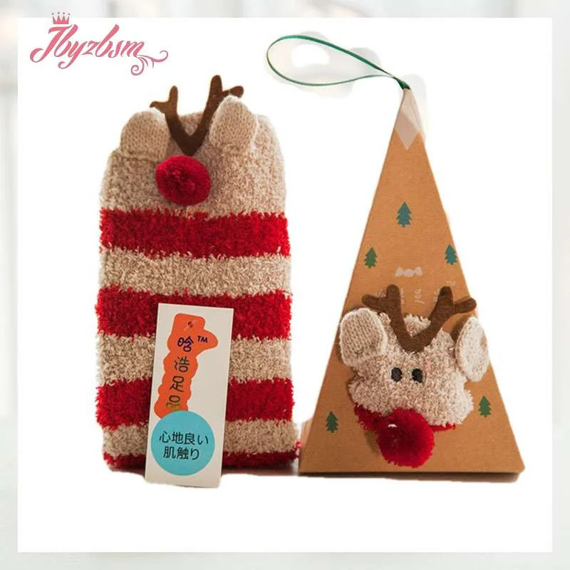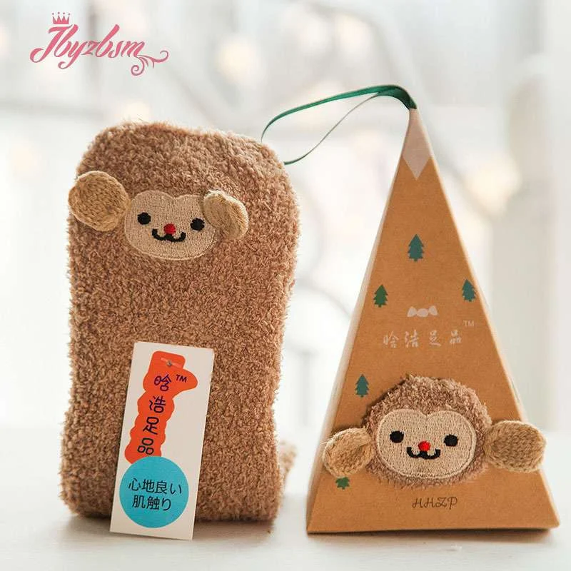 Милые рождественские носки с изображением животных, оленя, подарок, объемные пушистые коралловые бархатные плотные теплые зимние носки с флисовой подкладкой для женщин, Новогодний подарок