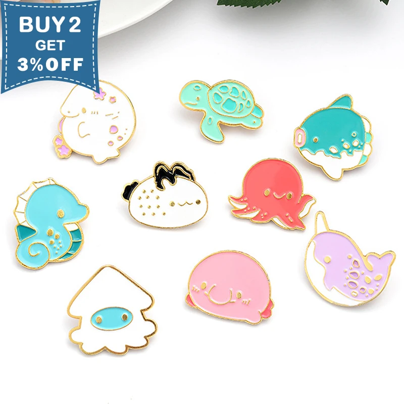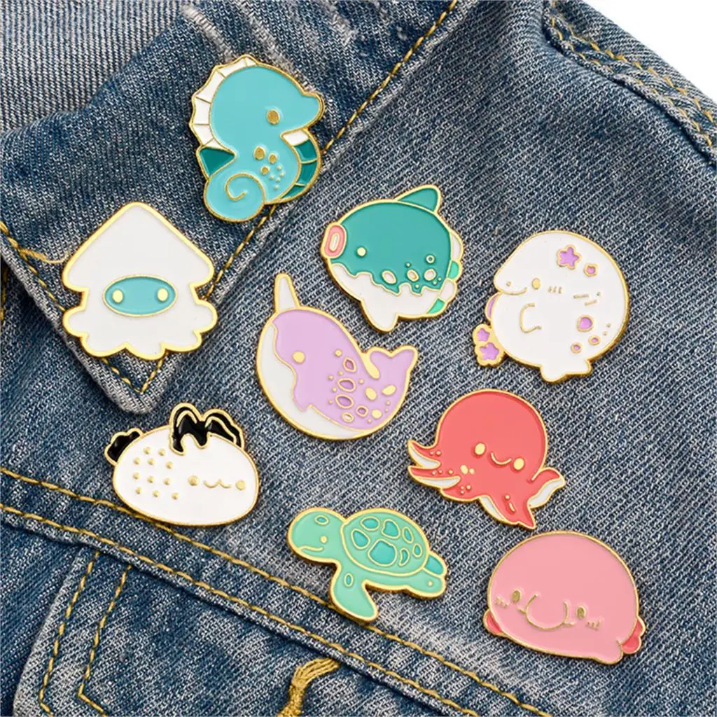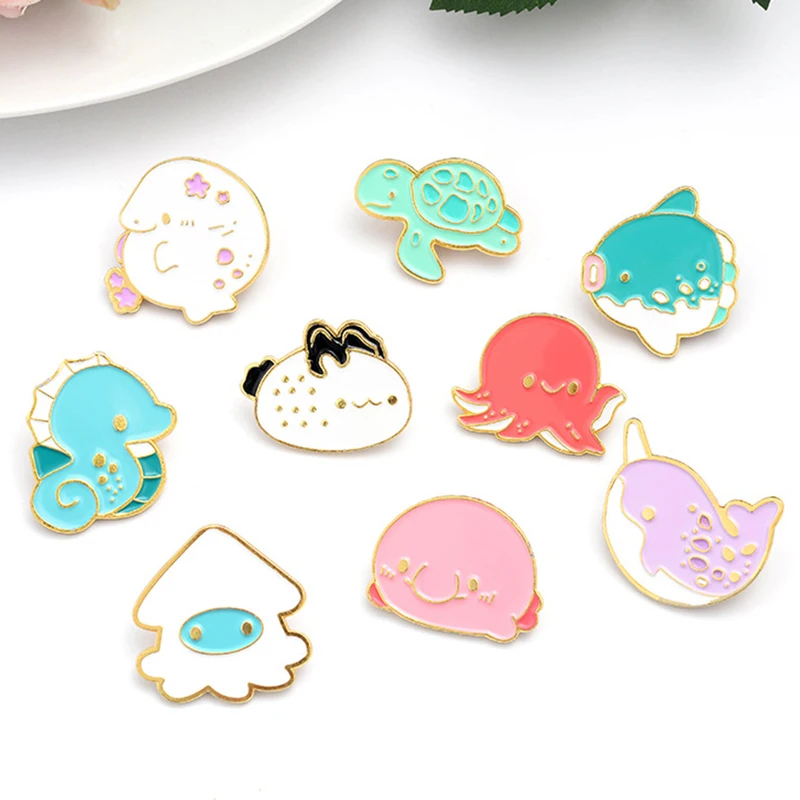 1 шт., брошь с эмалью в виде розового дельфина, оранжевого осьминога
