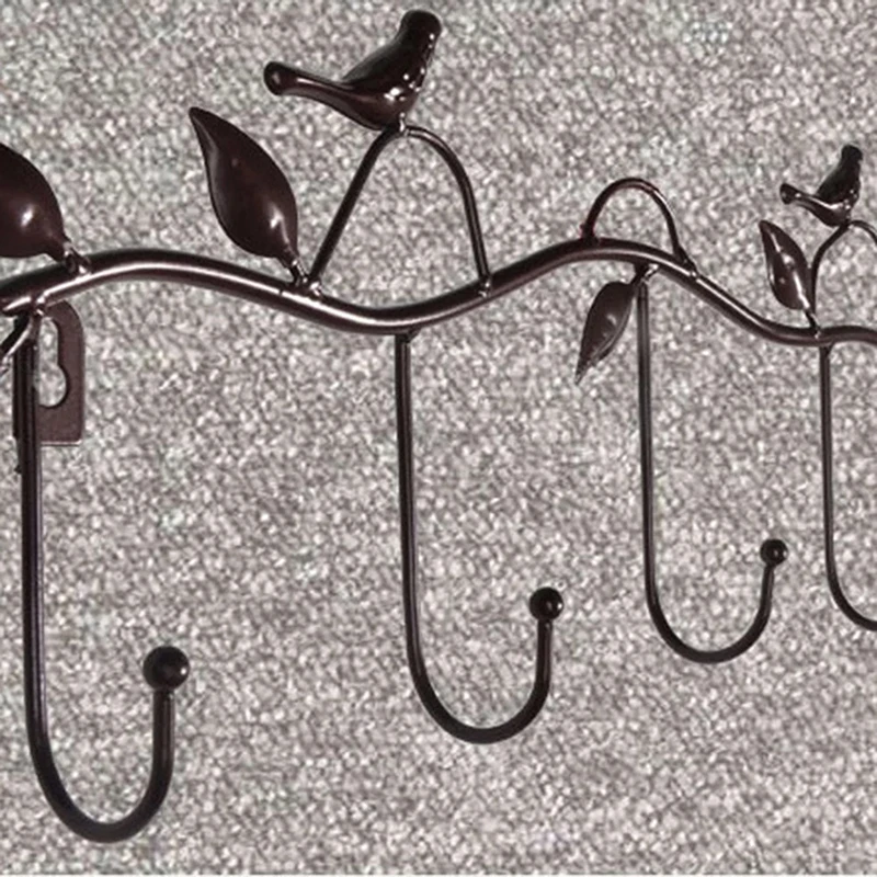 Ретро 5 крюк кованого железа крючок в виде птицы крючок Птица Форма лист настенное платье халат крючок ключ пальто держатель Крышка вешалка украшение для дома