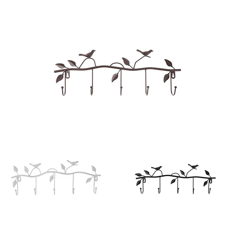 Ретро 5 крючков из кованого железа, искусственный крючок, птица, лист, стена, платье, крючок для халата, брелок, держатель для ключей