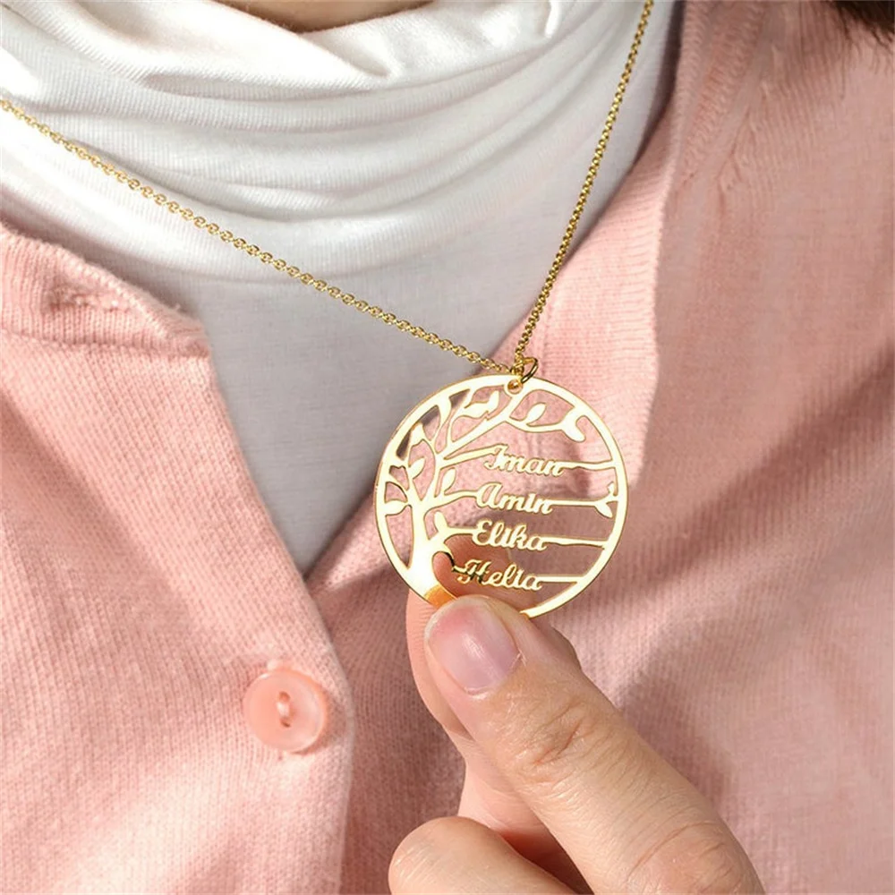 Индивидуальный Персонализированный Кулон из нержавеющей стали с изображением дерева жизни 1-5 названий, Женская Подарочная бижутерия