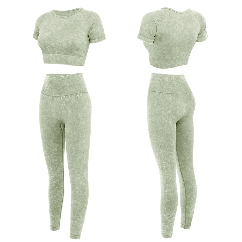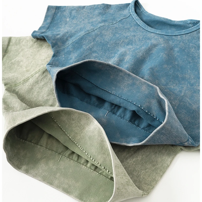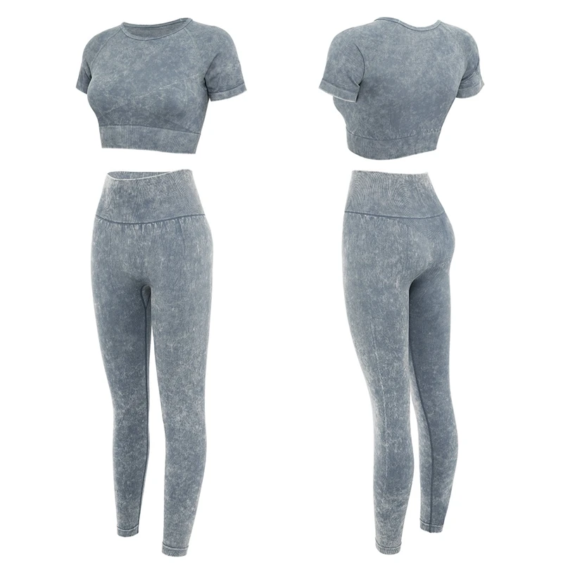 Спортивный комплект из двух предметов для йоги, Женский винтажный песочный спортивный бесшовный костюм для фитнеса, имитация джинсовой одежды, оттенки дождя