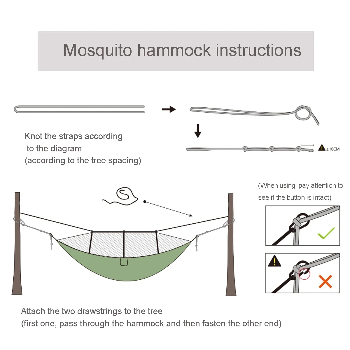 Не вытягивая веревку, сетка-гамак раскроется и автоматически встанет в течение 1 секунды