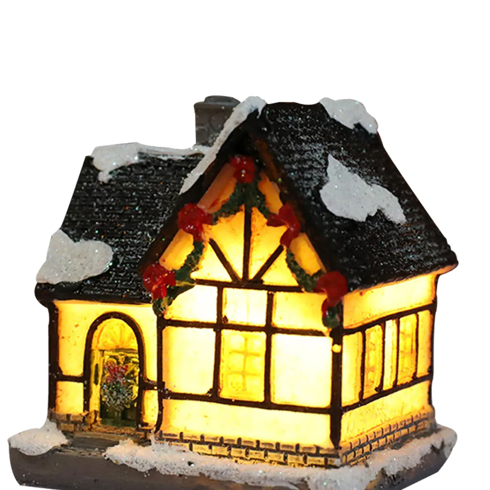 Рождественская миниатюрная скульптура из смолы для деревенского дома со светодиодным освещением, фигурка здания, украшения для дома, праздничные подарки для детей