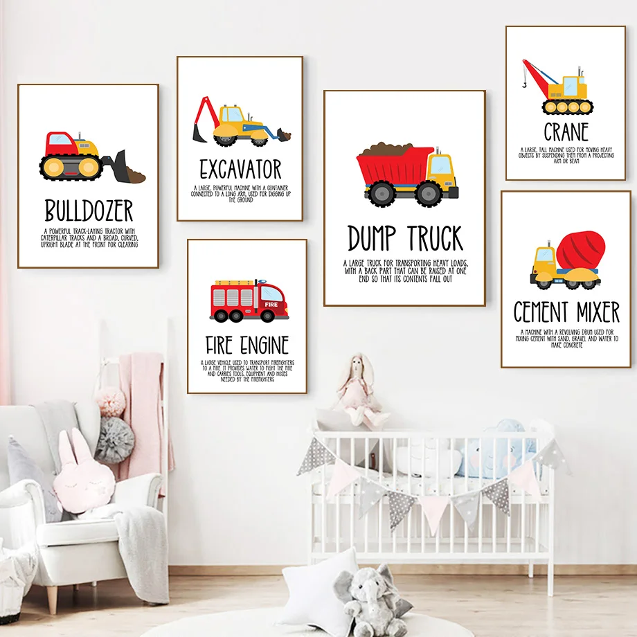 Инженерный автомобиль Алфавит Номер детской стены Искусство Холст К...