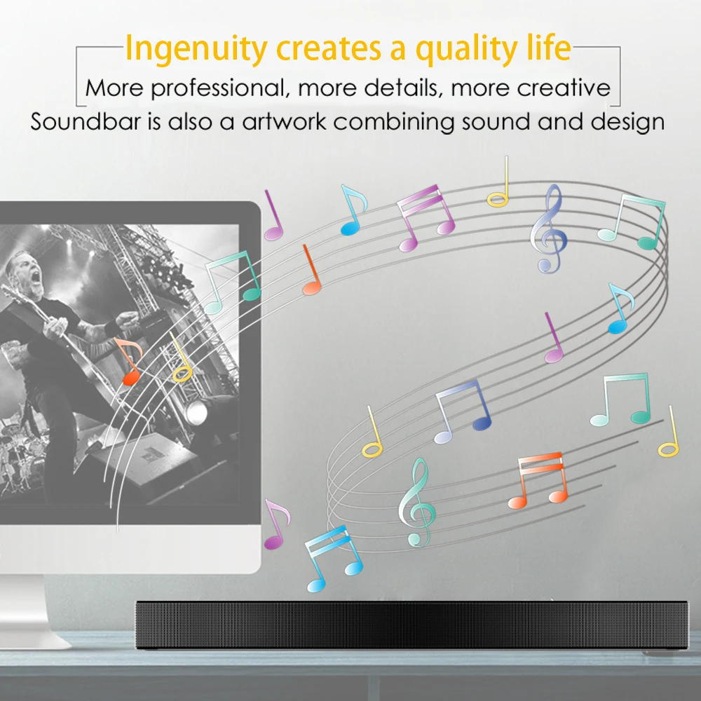 Канал: 2,0 1. Версия Bluetooth: V5.0 2. Динамик: 10 Вт * 4 3. Расстояние Bluetooth: 10 м 4. Емкость аккумулятора: 4000 мА 3,7 в 5. Номинальное напряжение: DC 5V 6. Время воспроизведения музыки: около 8 часов. 7. Время в режиме ожидания: 240 часа. 8. Время зарядки 1 А: около 4 часов. 9. Аудиовход: Bluetooth,HDMI(ARC), оптический, коаксиальный 3,5 мм Aux, USB 10. Размер: 600 × 60 × 54 мм 11.вес нетто: 1060 г 12.FM радиочастота: 87,5-108 13. Аксессуары: кабель HDMI, коаксиальный кабель, оптический кабель, 3,5 мм AUX кабель, пульт дистанционного управления, зарядный кабель, руководство 14. Поддержка TV/PC/Phone/Tablet/Laptop/MP3/MP4/ DVD/TV Box Audio