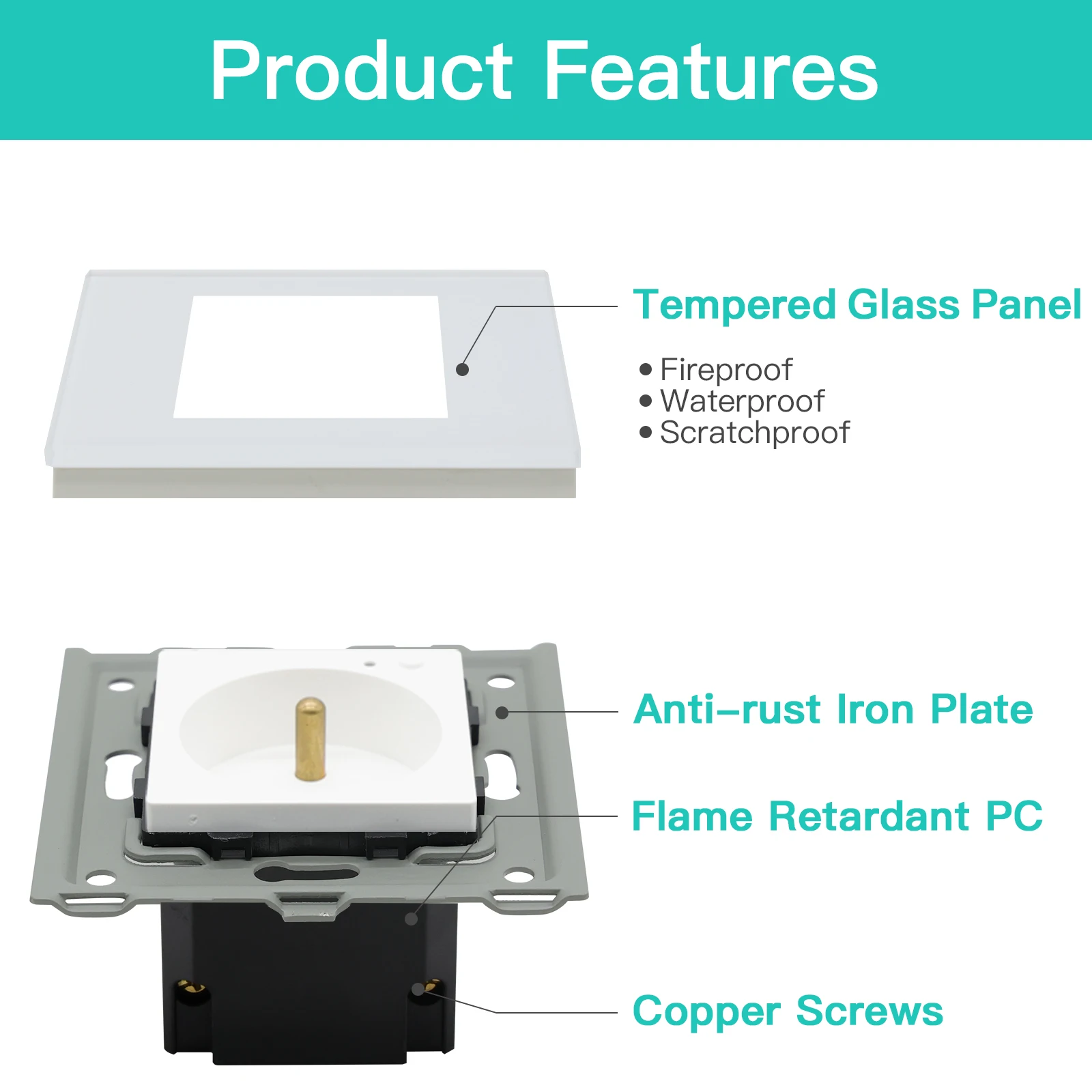Евророзетка Bseed Mvava, стеклянная смарт-розетка со стеклянной панелью, Wi-Fi, работает с устройством Tuya Google Home Alexa