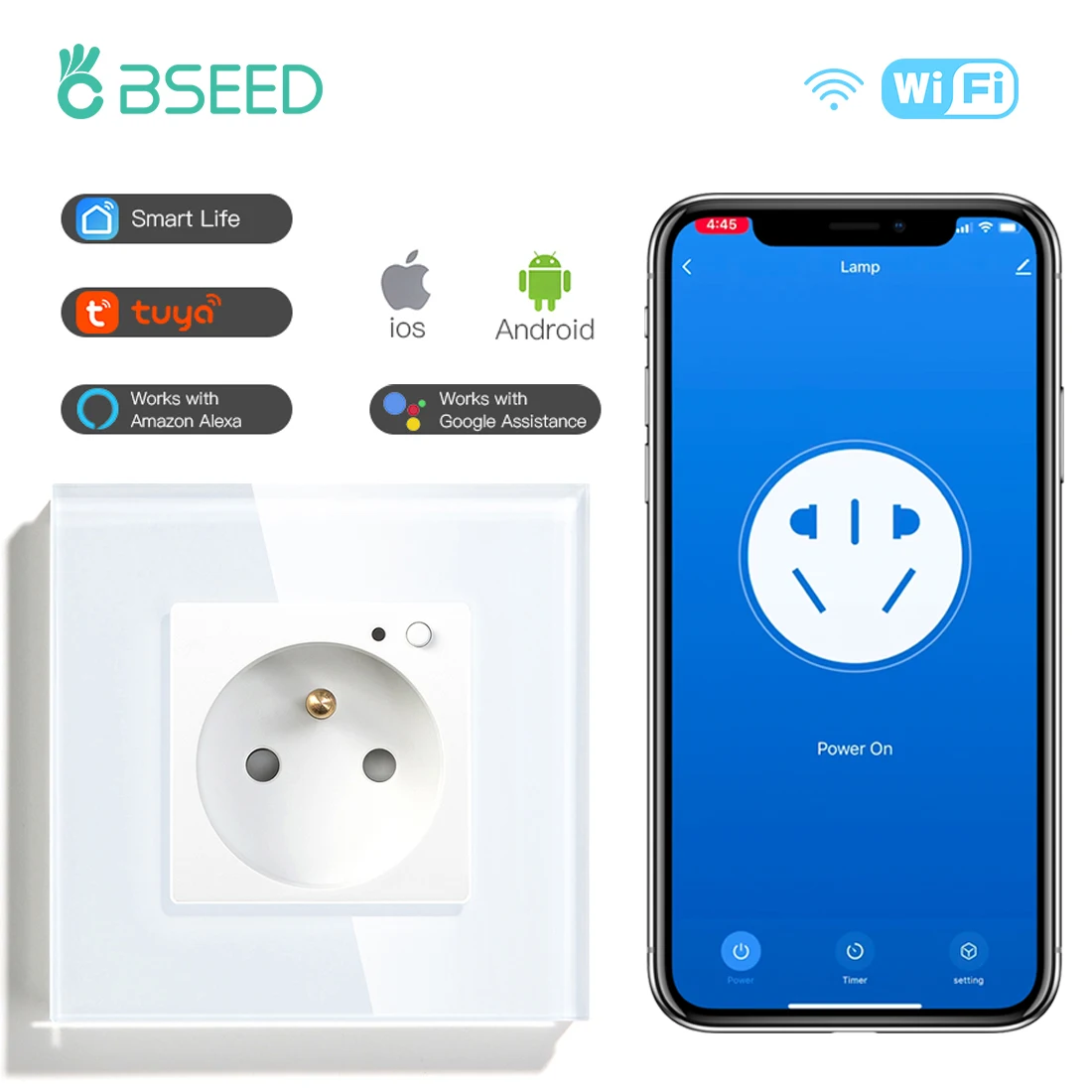 Bseed Mvava, Франция, Польша, стандарт, Wifi, розетка для монитора питания, панель из хрустального стекла, умные розетки, работает с Tuya Google Home Alexa