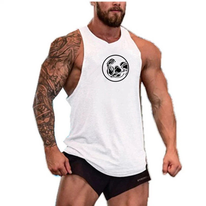 Майка мужская тренировочная с принтом животных, хлопок, Y-образный ...
