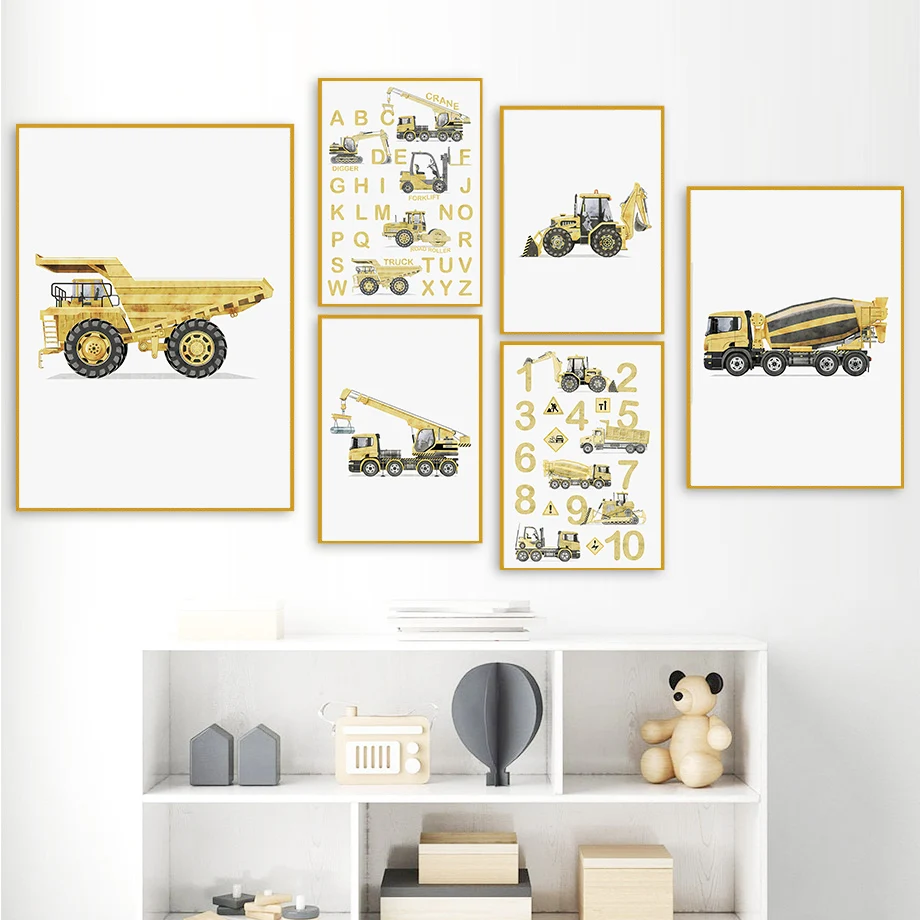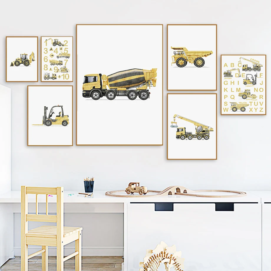 Пожарная машина кран экскаватор Алфавит цифры настенная живопись хо...
