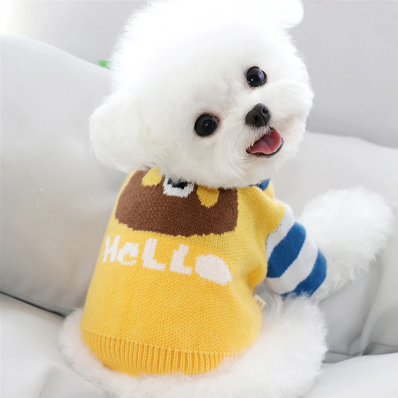 Мультяшный новый вязаный свитер для собаки осень и зима новая теплая куртка для домашних животных Бишон Шнауцер Померанский плюшевый бульдог Маленькие кошки и D