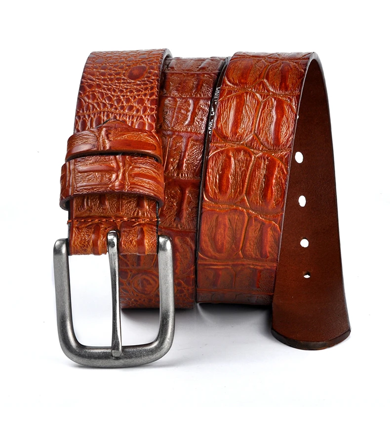 Мужской ремень из натуральной коровьей кожи для мужчин роскошный ремешок под крокодила Новая мода классический винтажный дизайн ремень с пряжкой высокого качества