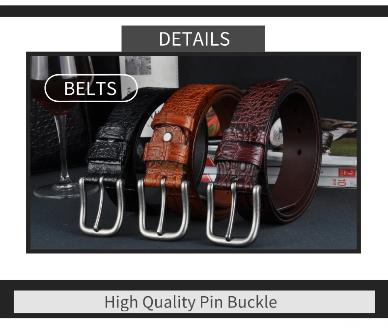 Мужские ремни из натуральной коровьей кожи для мужчин роскошный ремень из крокодиловой кожи Новая мода классический винтажный дизайн ремень с пряжкой Высокое качество:
