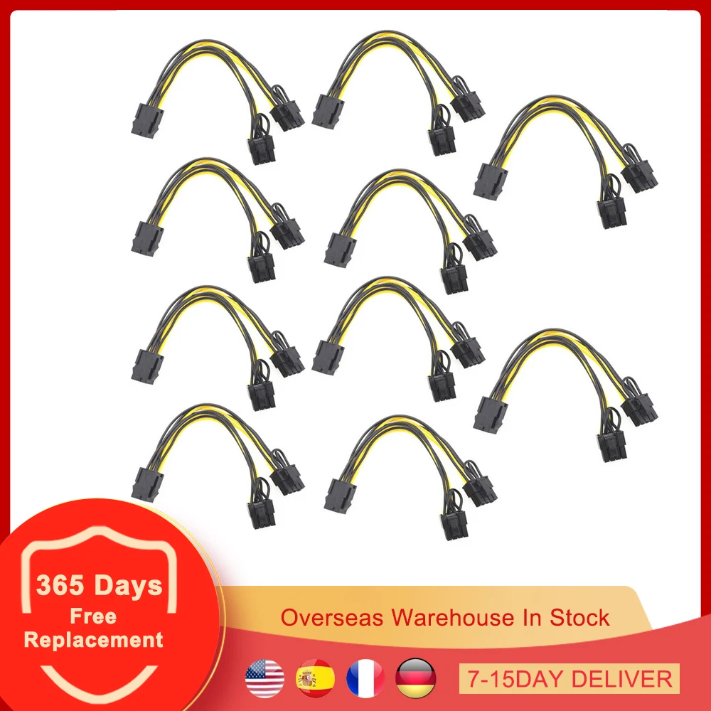 10 шт., 20 см PCIe 6-контактный на двойной 6 + 2-контактный 8-контактный GPU видеокарта, кабель для разделения питания, 6-контактный на двойной 8-контактный для майнинга BTC ETH