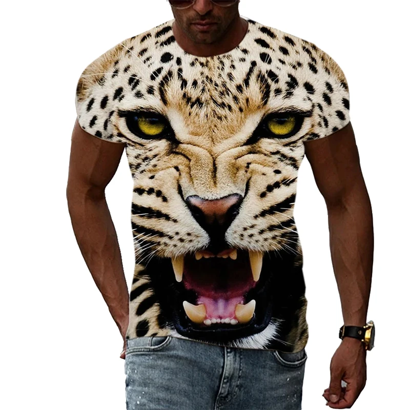 Новинка 2021, Мужская футболка с круглым вырезом, повседневный мужской топ с 3D принтом тигра и животных, Спортивная уличная модная одежда для фитнеса, большой размер