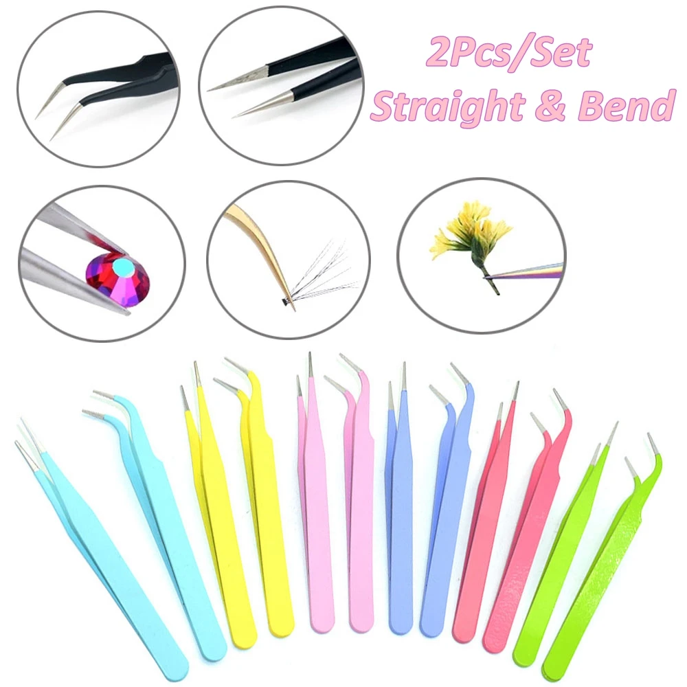 2 шт.набор, пинцет из нержавеющей стали для наращивания ресниц