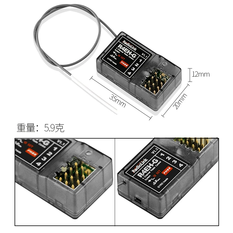 1 、 частота: 2,4 GHZ ISM полоса (2400 МГц-2483,5 МГц)2. Канал: 7CH3. Выход сигнала: PWM и PPM/PWM и SBUS4, с расширением спектра режим: FHSS 67-канал псевдо случайный методу частотных скачков5. Рабочий ток: 300 мА (база от напряжения питания)Описание:Бренд товара: RadiolinkНазвание товара: приемник R7FGМатериал: АБС-пластик и электронные компонентыЦвет: черныйПродукт Размеры: 30*18,5*11,5 ммДлина антенны: 200 ммВес изделия: около 6 гУпаковка Weigt: около 8 гСпецификация:Частота: 2,4 GHZ ISM полоса (2400 МГц-2483,5 МГц)Канал: 7CHВыход сигнала: PWM и PPM/PWM и SBUSПрименение модели: автомобиль/лодкаС расширением спектра режим: FHSS 67-канал псевдо случайный методу частотных скачковДиапазон напряжения: 4-10 вРабочий ток: 300 мА (база от напряжения питания)Совместимый передатчик: RC6GS RC4GS T8FB (Примечание: также совместим с RC3S/RC4G, но так как эти два передатчика не имеют usb-порта, последняя прошивка не может быть обновлена, и информация о передаче напряжения и сигналов не может быть отображена на их главном интерфейсе)Расстояние управления: 600 м на земле
