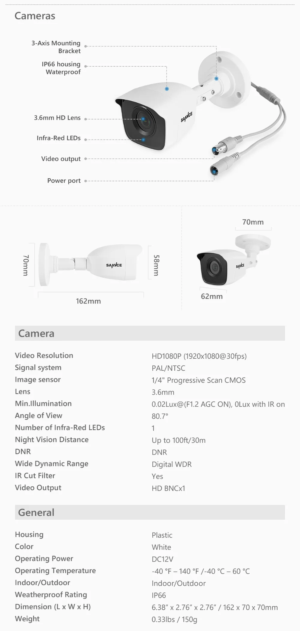 Система видеонаблюдения SANNCE, 8 каналов, 1080P Lite, 4x8x1080P