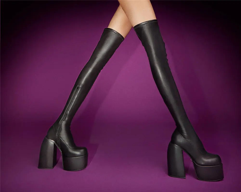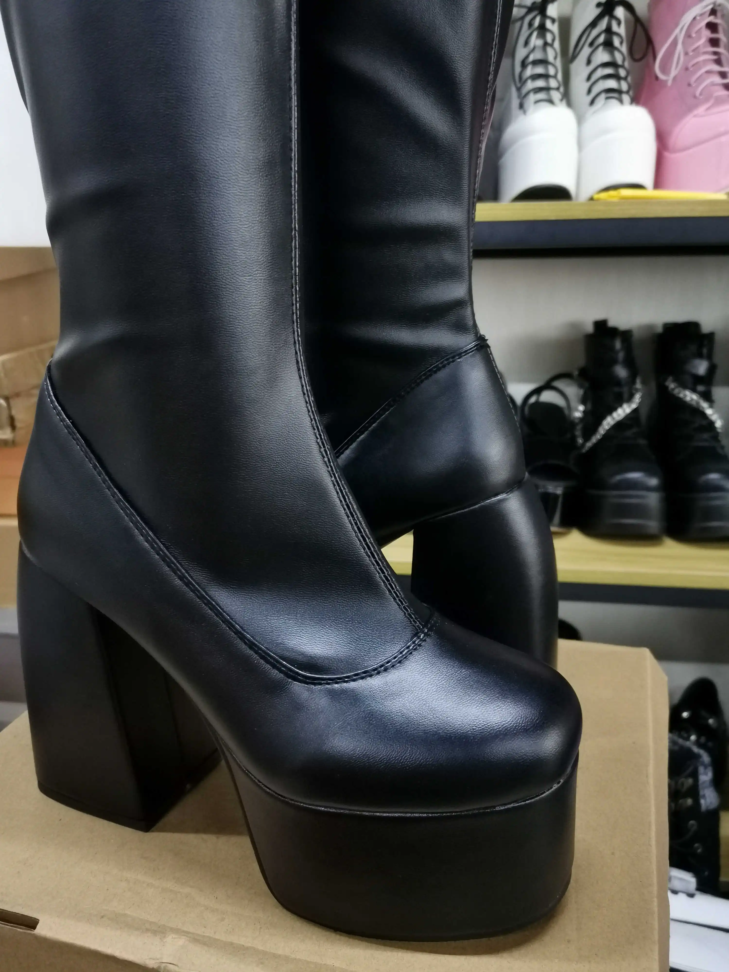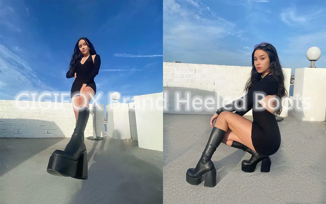 Женские вечерние сапоги GIGIFOX, черные брендовые дизайнерские сапоги на высоком массивном каблуке и платформе, большой размер 43