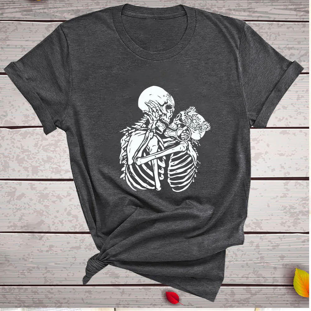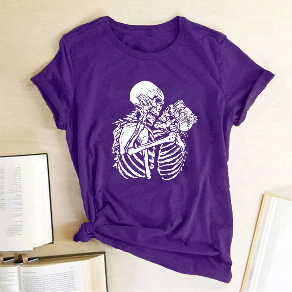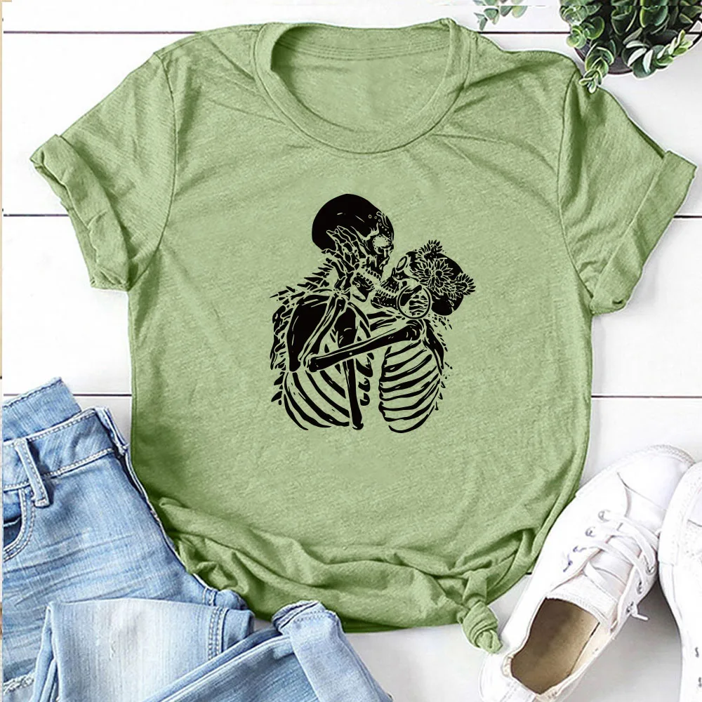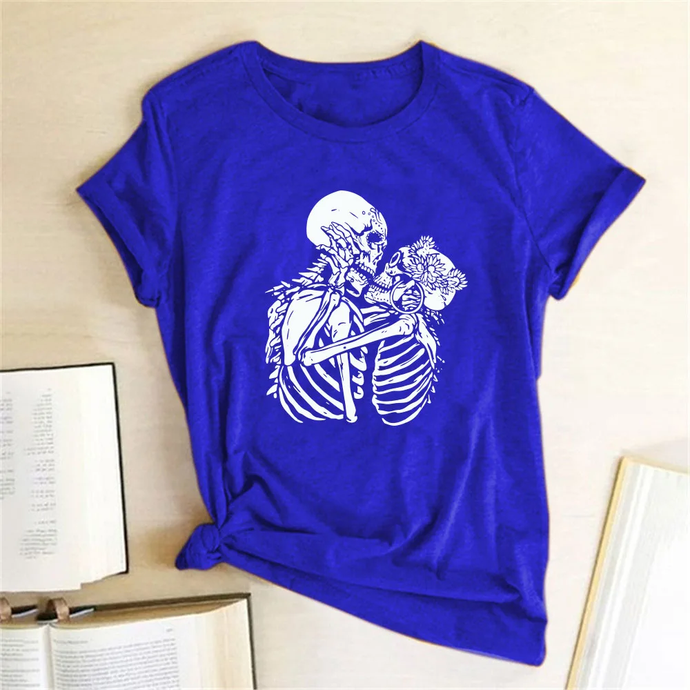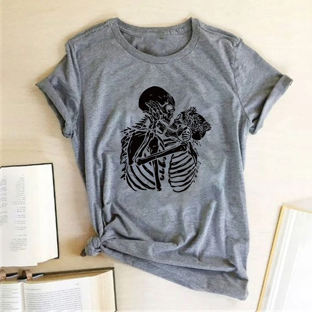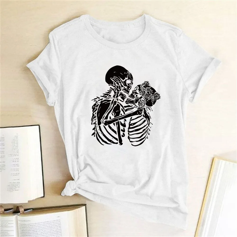 Футболка в стиле Харадзюку на Хэллоуин, женская футболка с принтом скелета, черепа, забавная женская футболка, женский летний Свободный Топ с коротким рукавом, одежда