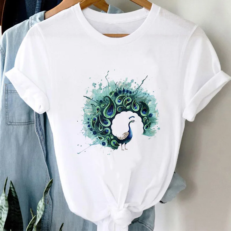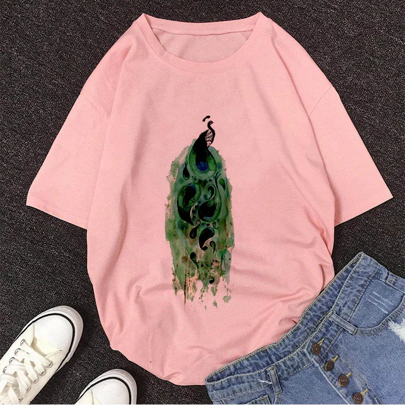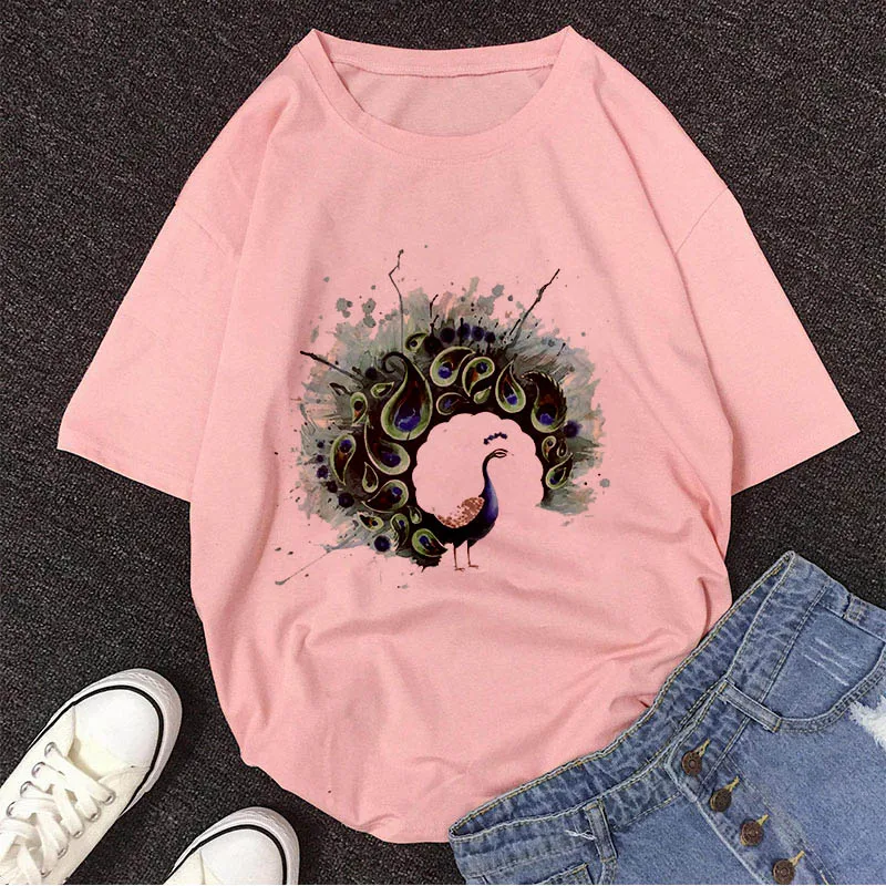 Женские рубашки с павлиньими животными, женская одежда, женские футболки, топы, женская футболка, женская футболка с графическим принтом в стиле Харадзюку, женская футболка, одежда