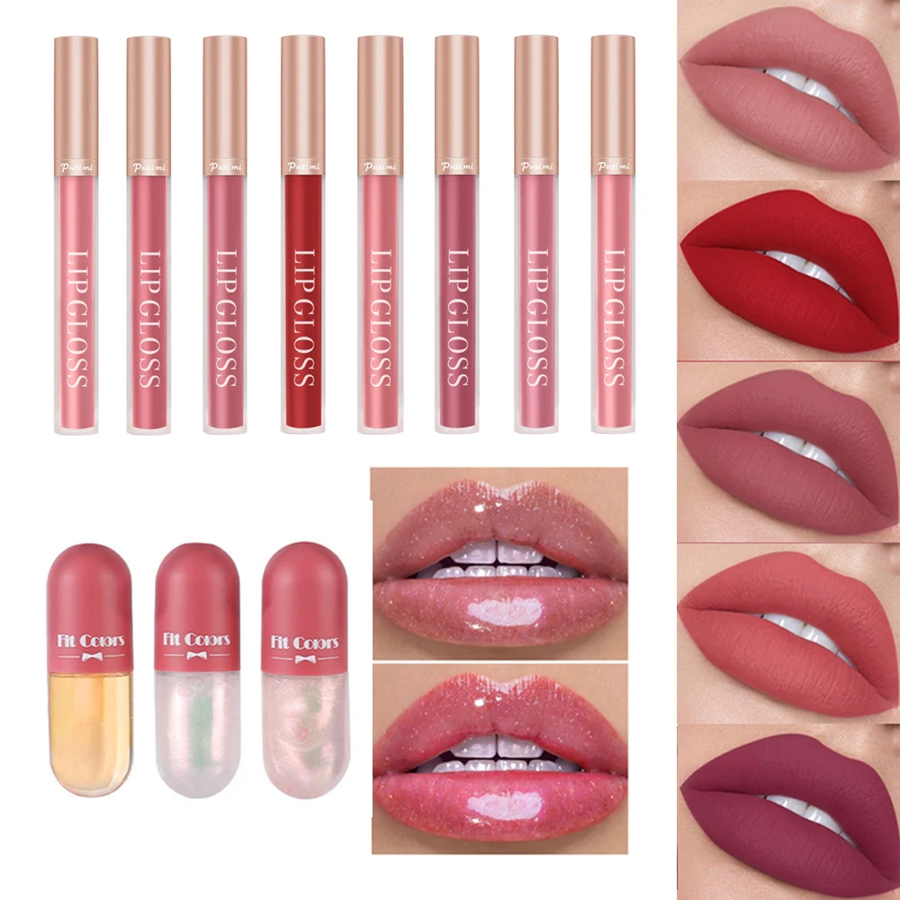2 шт.компл. Макияж для губ пухлые масляные восстанавливающие тонкие линии увлажнение губ сексуальный блеск для губ водостойкая бархатная матовая губная помада Косметика