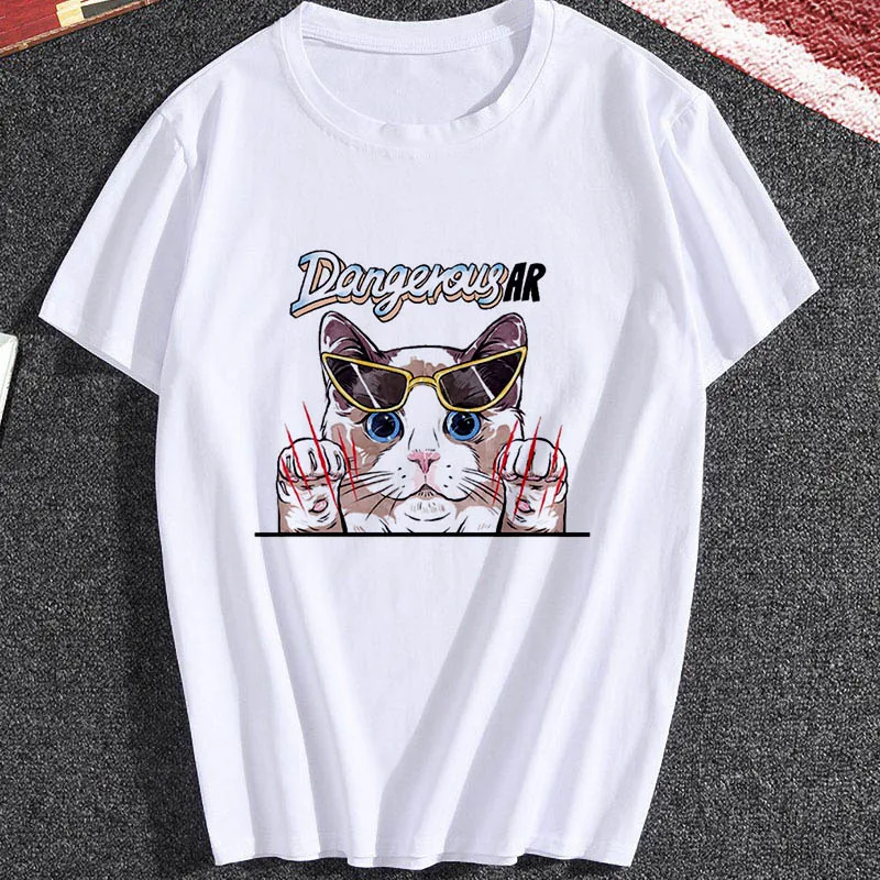 Женская футболка с принтом в виде боксерского кота, летняя Милая мо...