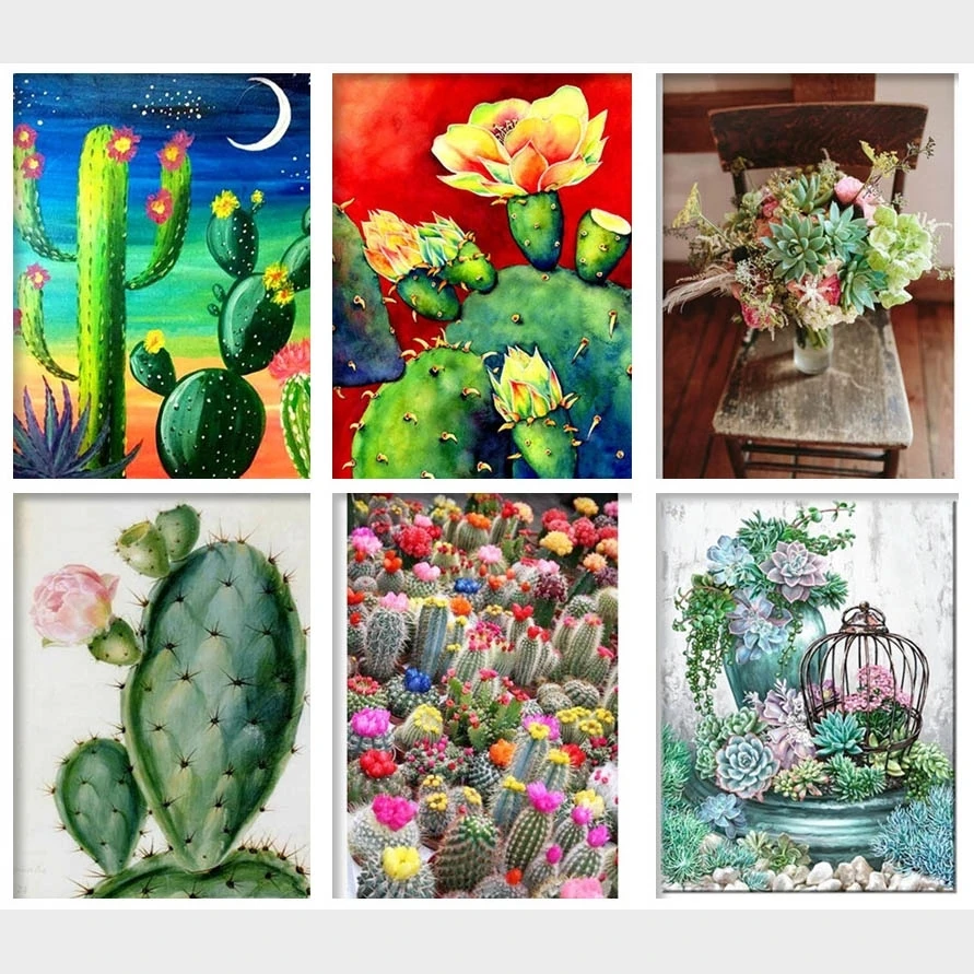 Алмазная 5D Вышивка сделай сам, картина квадратной формы с изображением кактуса, вышивка крестиком, мозаика с изображением кактуса, украшение для дома