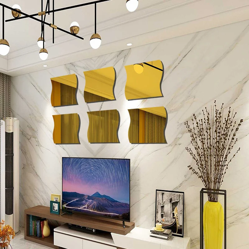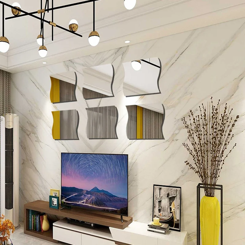 6 шт. 3D зеркальные настенные наклейки, волнистые акриловые декорат...