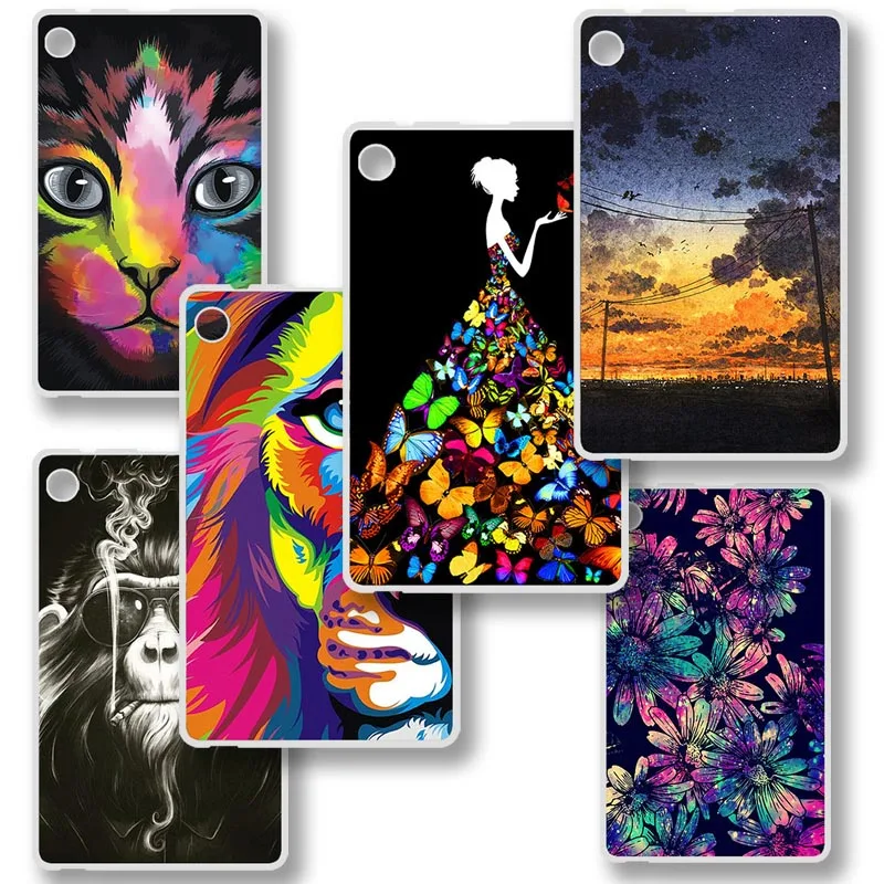 Особенности:1. Разные модели на выбор.2. Роскошь и мода изготовлены из высококачественного материала.3. Защитите планшет от царапин, грязи, разрыва и износа.4. При использовании, не нужно вынимать планшет из чехол.5.100% абсолютно новый и совместим с вашим планшетом.6. Окрашенный мягкий силиконовый ультратонкий ТПУ узор, прочный и моющийся. Идеально подходит для формы, легко надевается и легко снимается