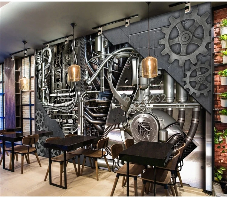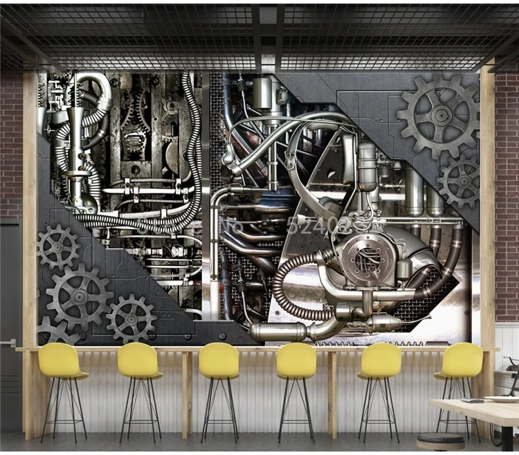 Пользовательские Настенные обои 3D стерео металлическая индустриальная Шестерня машина настенная живопись Ресторан Бар КТВ фоновая стена Papel де Parede 3D