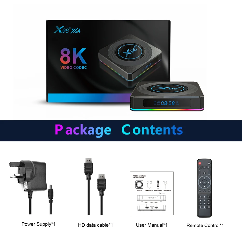 ТВ-приставка X96 X4 S905X4 Smart RGB с подсветкой, Android 11, двухдиапазонный 2,4 ГГц5 ГГц, Wi-Fi, Bluetooth, медиа-плеер, ТВ-приставка 8K, ТВ-приставка