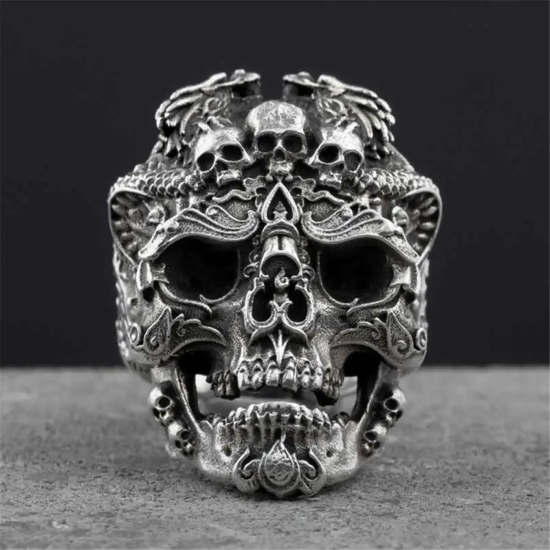 Модное кольцо в готическом стиле с большим ртом и черепом, мужское ...