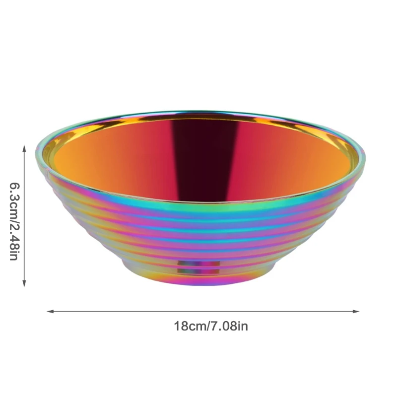 Миска для лапши из нержавеющей стали двухслойный термостойкий кухонный пищевой контейнерOOTDTYОсобенности:100% новый и высокое качествоКонструкция с двойными стенками сохраняет еду изолированной, без передачи тепла/холода на внешнюю поверхность чаши.Удобно: легко чистить, мыть в посудомоечной машине.Стабильная подошва: круглая подошва, которая может обеспечить комфортное сцепление без конденсации, чтобы не скользить.Идеально подходит для холодной или горячей еды, идеальные размеры для супа, ramen, udon, pho, лапши и т. д.Вы также можете использовать его для каши, фруктов, салата.Применение: Домашнее использование, использование лапши, вечерние, семейные мероприятия и другие мероприятия.Спецификация:Материал: нержавеющая стальРазмер: прибл. 18x6.3 см/7.08x2.48 дюймовОпционально Цвет: золотой, красный ed, розовое золото, серебро, цвет fulКоличество: 1 шт.Примечание:Перевод ед. измерения: 1 см = 10 мм = 0,39 дюймовНет розничной упаковки.Возможны отклонения в 1-3 см вследствие измерений вручную. Пожалуйста, убедитесь, что вы не возражаете, прежде чем сделать ставку.Из-за разницы между различными мониторами изображение может не отражать фактический цвет изделия. Спасибо!Посылка включает в себя:1 x чаша (другие аксессуары на фото не включены.)