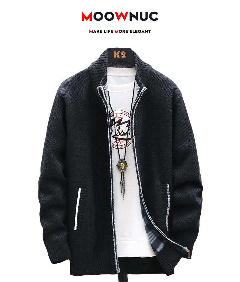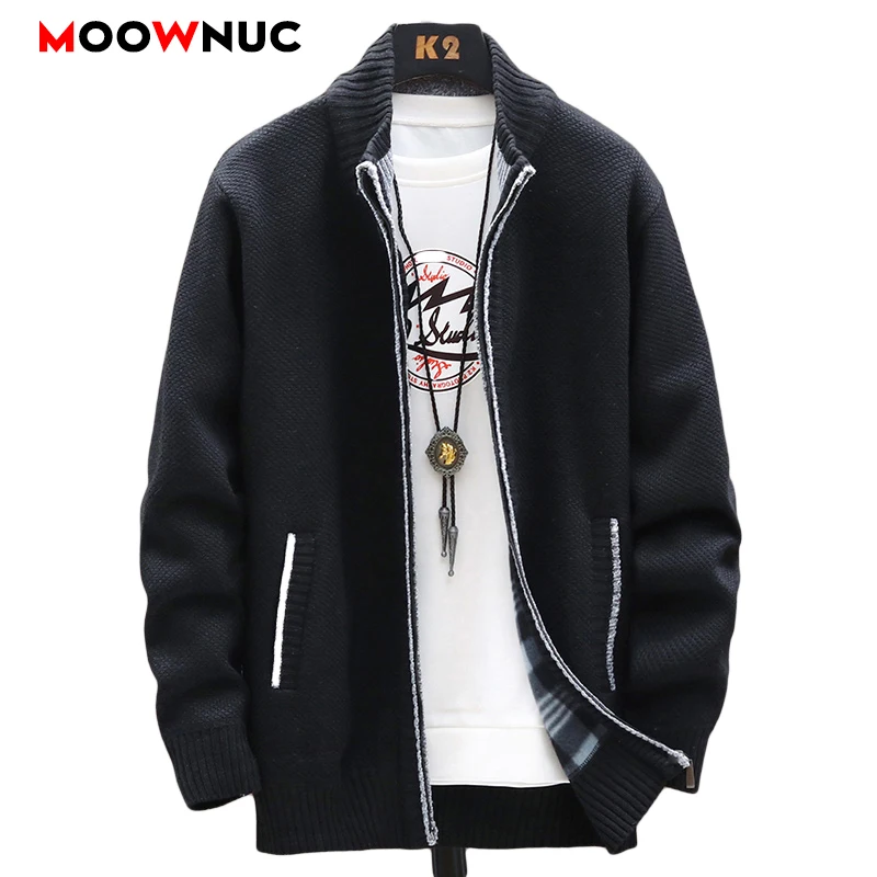 Мужские модные свитера с длинным рукавом, осенний кардиган 2021, повседневные пальто, однотонные, плотные, облегающие, теплые мужские, весна-зима, новый бренд MOOWNUC