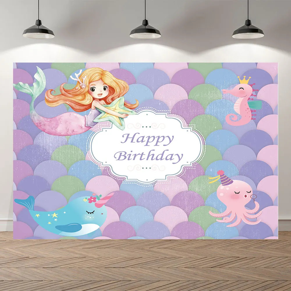 Nitree маленькая Русалка Принцесса морская лошадь Радуга Рыба весы фон С Днем Рождения фотография фон
