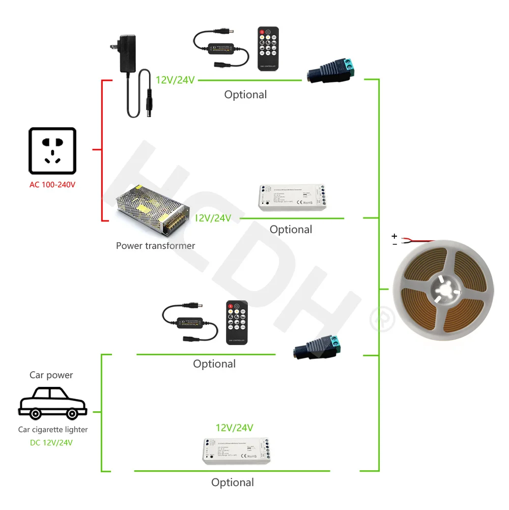 1 быстрый разъем постоянного тока (1 шт. на большую посылка)COB является новой технологии для светодиодный полосы производство, обеспечивает гораздо более равномерный непрерывного светильник по сравнению с традиционными SMD светодиодный полосы. Нет темной точки