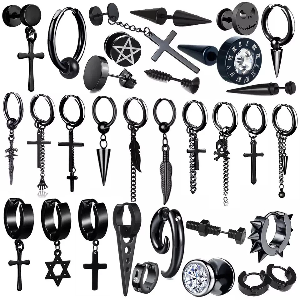 Серьги-гвоздики из нержавеющей стали для мужчин и женщин, Винтажные Украшения для пирсинга крестом в стиле панк, Необычные уличные, в стиле хип-хоп, готические ювелирные украшения для ушей, черные, 1 шт.