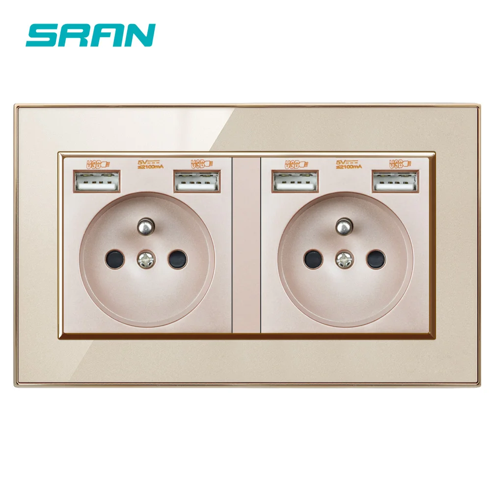 SRAN бренд 2 Рамка французский настенная розетка стандарта ЕС с usb...
