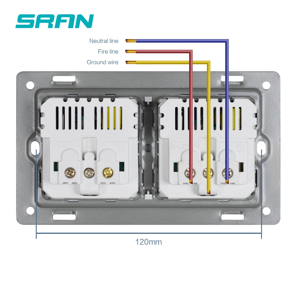 Двойная настенная розетка SRAN France, 16 А, 220 В, белаячерная пан...