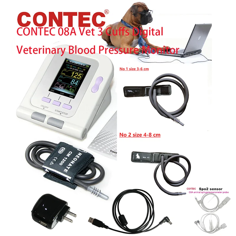 Новый ветеринарный Сфигмоманометр Contec08a с 3 манжетами, компьютерное программное обеспечение может быть оснащено зондом с функцией кислорода в крови