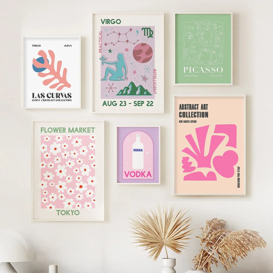 Абстрактная красочная цветочная Матисс, японская настенная Картина ...