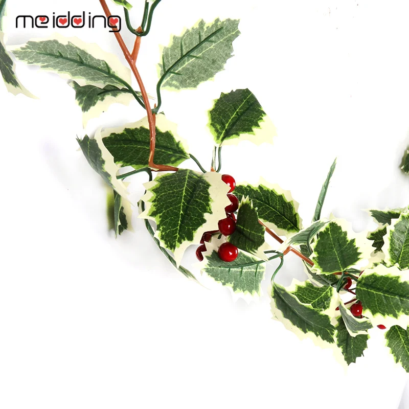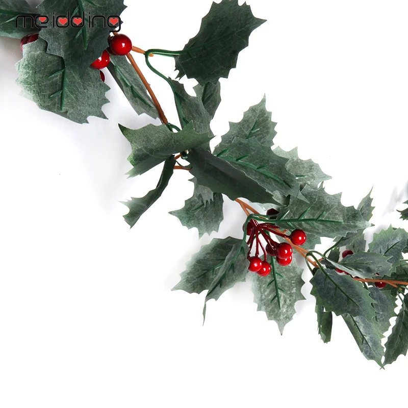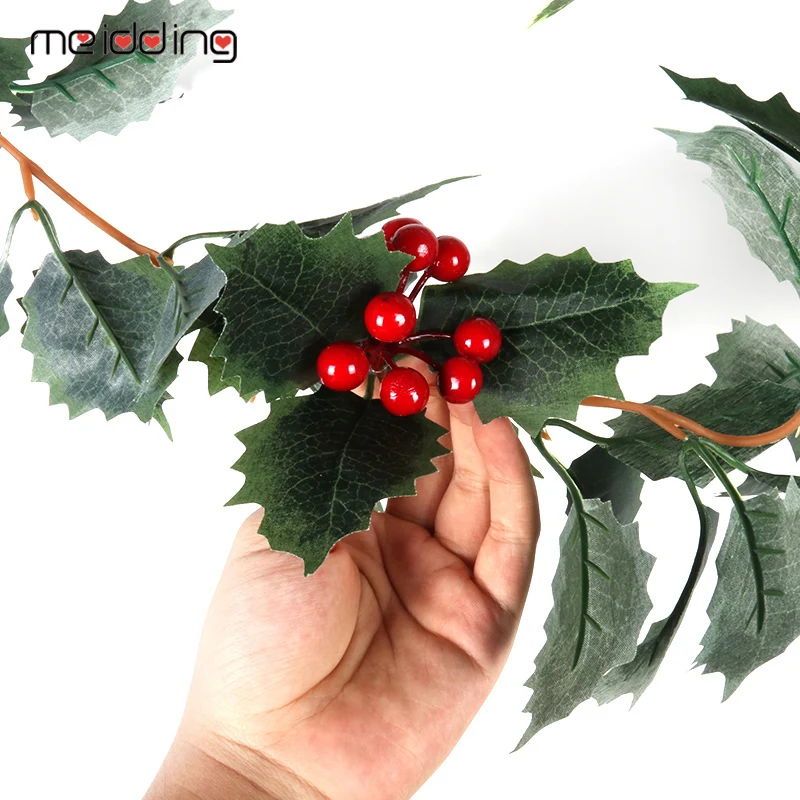 Рождественский венок 155 см, гирлянда Холли, искусственный цветок, Рождественский Декор для дома, водоносный камень, лист, 2022, новогодняя лоза