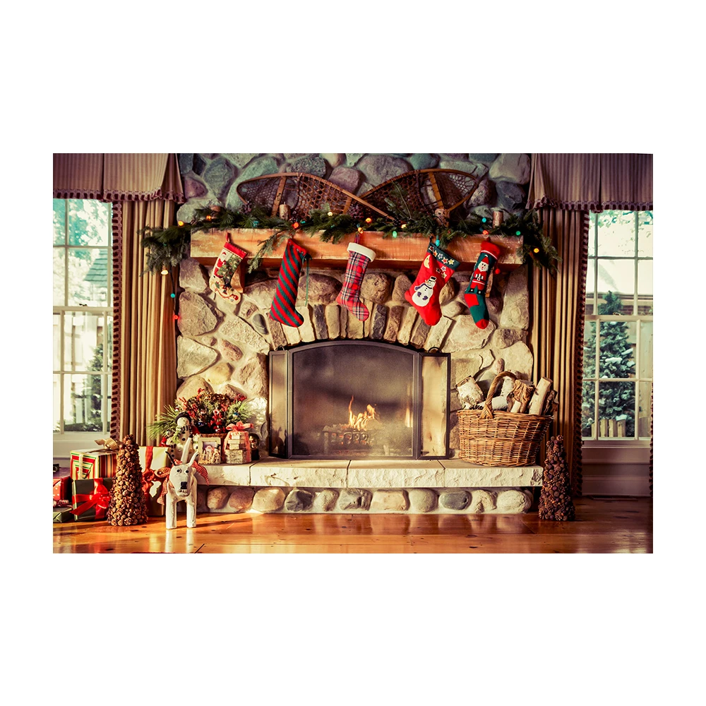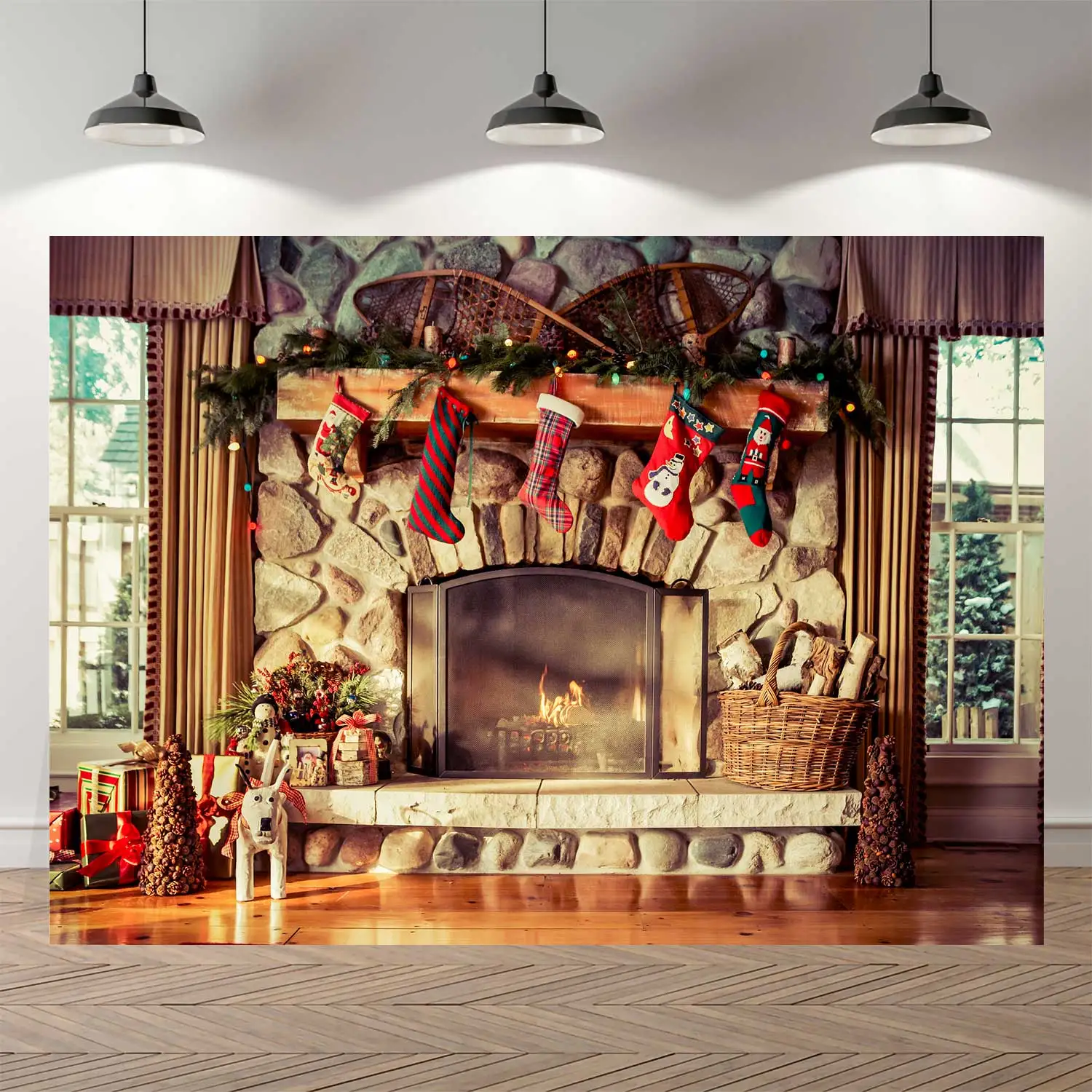Виниловый Рождественский фон Nitree для фотосъемки в помещении с изображением чулок и камина