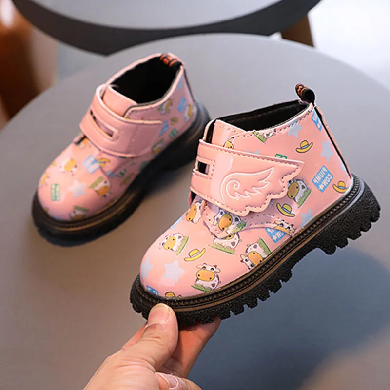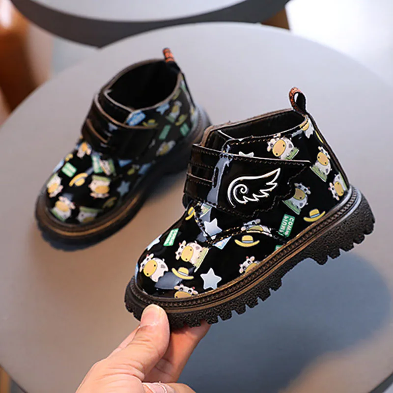 Зимние Детские Ботинки Martin для девочек 2021, милые детские ботинки с принтом для мальчиков, нескользящая Мягкая Водонепроницаемая легкая обувь для малышей